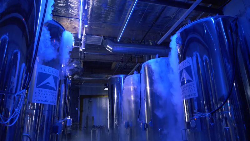 Στις εγκαταστάσεις του Ιδρύματος Παράτασης Ζωής της εταιρίας Άλκορ στις ΗΠΑ, κείτονται αραδιασμένοι μέσα σε πελώριους κυλίνδρους γεμάτους με υγρό άζωτο σε θερμοκρασίες διαστημικού ψύχους περίπου διακόσιοι κλινικά νεκροί, υπερήλικες και βαριά άρρωστοι άνθρωποι, ελπίζοντας ότι μία μέρα θα βρεθούν τα φάρμακα και η τεχνολογία που θα τους χαρίσει και πάλι νεανικό σφρίγος ή σιδερένια υγεία.